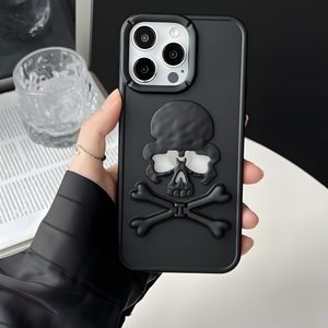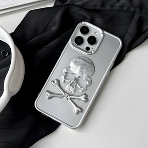 This iPhone case combines style with a bold statement through its 3D skull and crossbones design, making it a standout accessory for your device. Its sleek, metallic silver finish adds a modern touch, while maintaining durability and functionality.