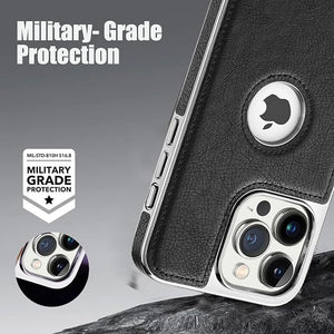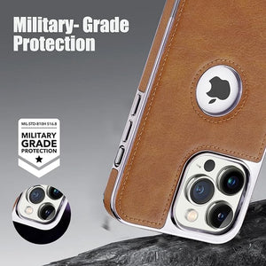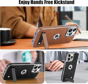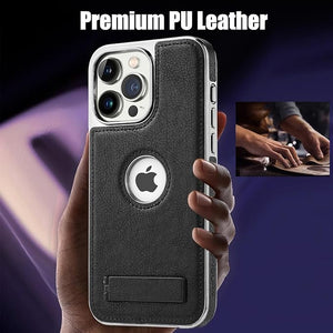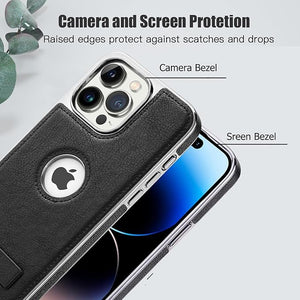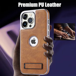 iPhone Leather Case with Kickstand, 2 Adjustable Stand Modes, Retro Luxury Business Electroplated Edges Drop Protection Slim Cover for iPhone