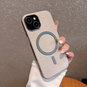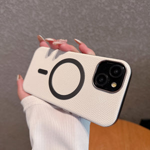 Luxury Leather Print Genuine PC Magnet Phone Case for iPhone Series Shockproof Back Protection