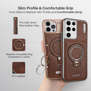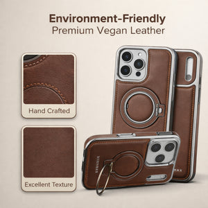 Give your iPhone the perfect blend of luxury, protection, and convenience with our Premium Leather MagSafe Kickstand Case. Designed for users who want style without compromising on functionality, this case is crafted with high-grade PU leather, a metal magnetic ring, and a shock-absorbing TPU frame to keep your device safe and stylish.