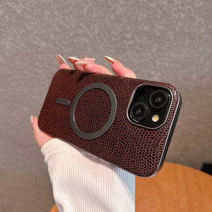 Luxury Leather Print Genuine PC Magnet Phone Case for iPhone Series Shockproof Back Protection