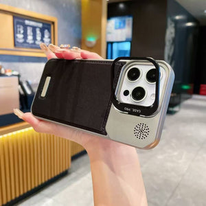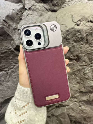Leather Metal Stand Case with, Anti-Scratch & Dust Protection, Raised Lens Protector, Soft Leather Covers, Titanium Edges.